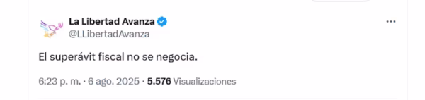 Tras la aprobación de la ley de financiamiento universitario, La Libertad Avanza publicó un duro mensaje. “El superávit fiscal no se negocia”, escribieron.